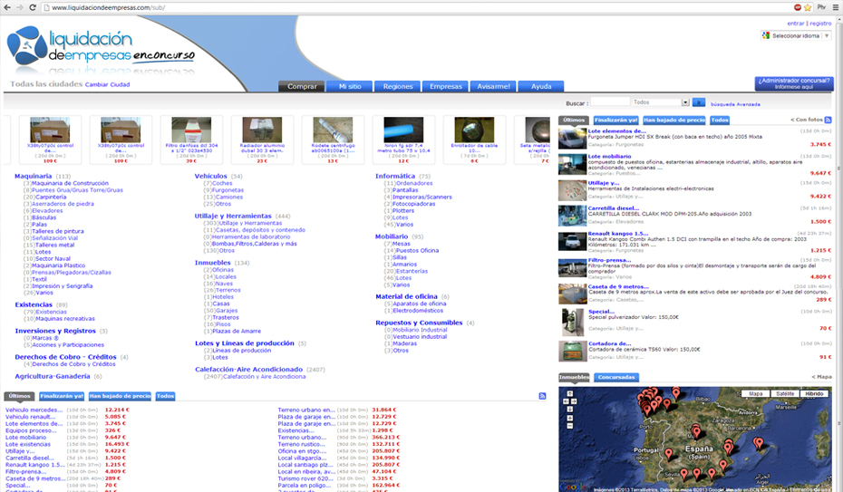 Portal dedicado a la venta de activos de empresas en liquidación concursal. Más de 200 concursadas liquidadas y miles de usuarios registrados. Servicio gratuito para la concursada y la administración concursal.