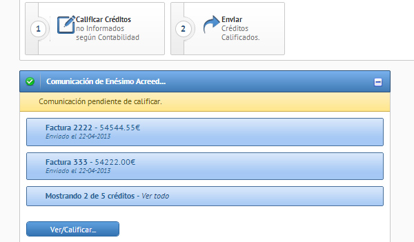 El programa le permitirá calificar los créditos, asignar el artículo correspondiente, añadir comentarios y adjuntos, y enviar la calificación al acreedor.