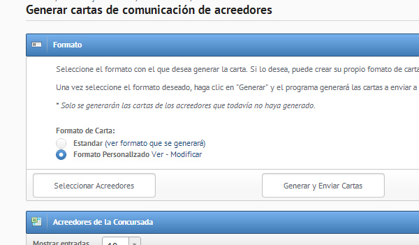 Concurline.com le permitirá generar la carta (modelo o personalizada) y enviar con un solo clic, todas las cartas a los acreedores para la comunicación de su crédito a través del programa.