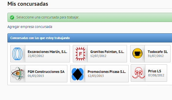 Concurline.com le permitirá crear las concursadas que desee. Desde una única cuenta, podrá seleccionar la concursada con la que desea trabajar.