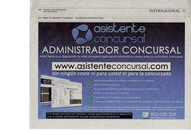 Anuncio Nacional en el diario ABCAnuncio de 5 días a media página en el díario nacional ABC. |